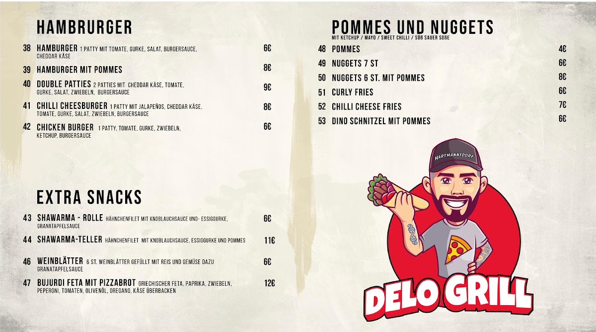 Introducing Delo Grill, a standout doner kebab restaurant nestled on Eisenberger Str. 8 in Hartmannsdorf, Germany. With a menu that tantalizes your taste buds, their signature Chilli Chees Döner is a must-try—uniquely crafted with round, delicious bread, it promises a spicy, cheesy explosion unlike any other in the area. Delo Grill doesn't stop at döner; you can also savor delectable pizzas, hearty hamburgers, and comforting noodles, all made with fresh, high-quality ingredients that leave a lasting impression.